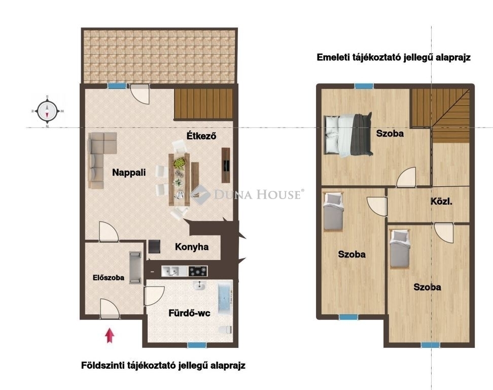 Az ingatlan műanyag nyílászárókkal, biztonsági bejárati ajtóval rendelkezik, földszintjén kialakított nappali-konyha-étkező nem rég új burkolatokat kapott. A két szint között felszerelt hűtő-fűtő klíma berendezés garantálhatja a kellemes hőmérsékletet bármely évszakban. Az emeleten 3 külön bejáratú hálószoba található, melyek jelenleg padlószőnyeg burkolattal ellátottak.