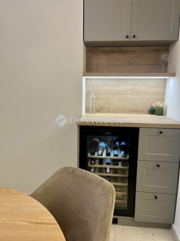 - az étkezőben egyedi borhűtő-körbeépítés, praktikus tárolófelületekkel,
