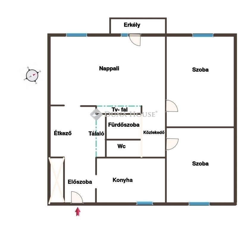 - nappali, konyha, étkező, 2 külön nyíló hálószoba, külön fürdőszoba - wc, előszoba, erkély helyiségekből áll,