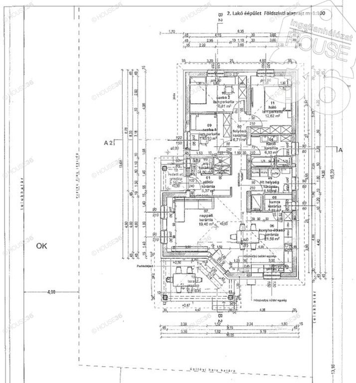 Lakótér mérete: bruttó 149,52 m2 – nettó 104,17 m2