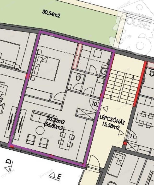 Az épület első emeletén, bruttó 55,3 m2, nettó 50,22 m2 lakóterű, nappali + 1 szobás lakás megvásárolható, mely külön lépcsőházból elérhető ahol nincs lift.
