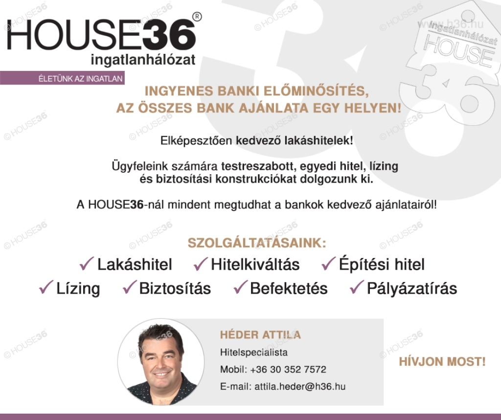 Az iroda legfrissebb, aktuális kínálatát a HOUSE36 saját weboldalán találja! Hibás hirdetés bejelentése