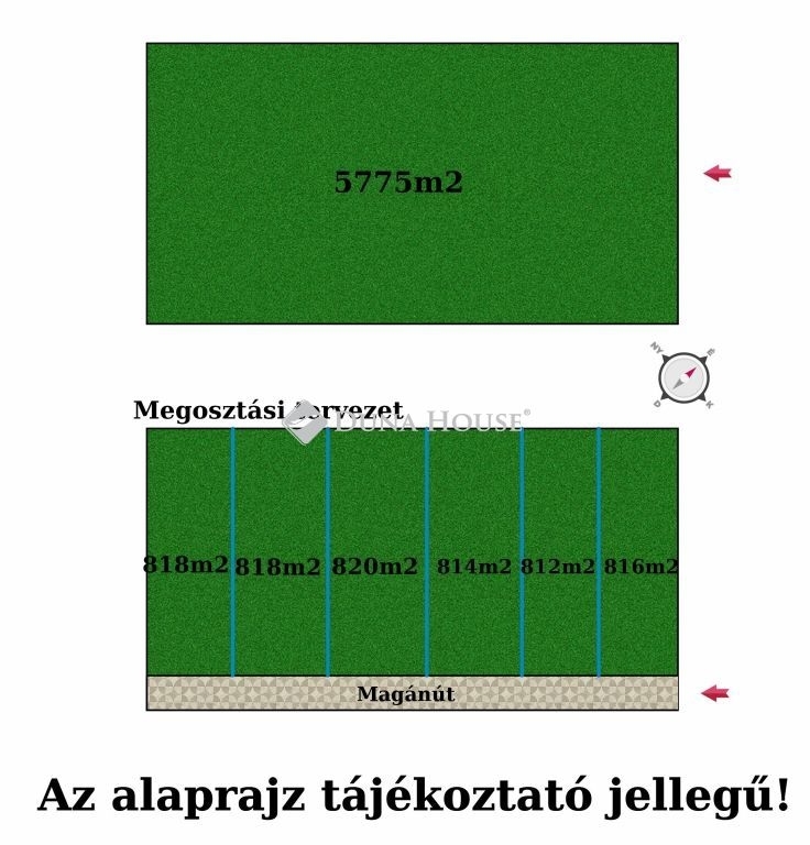 Összesen 5775m2 területű, mely 6 telekre lesz osztva, melynek a megosztási tervezete folyamatban van.