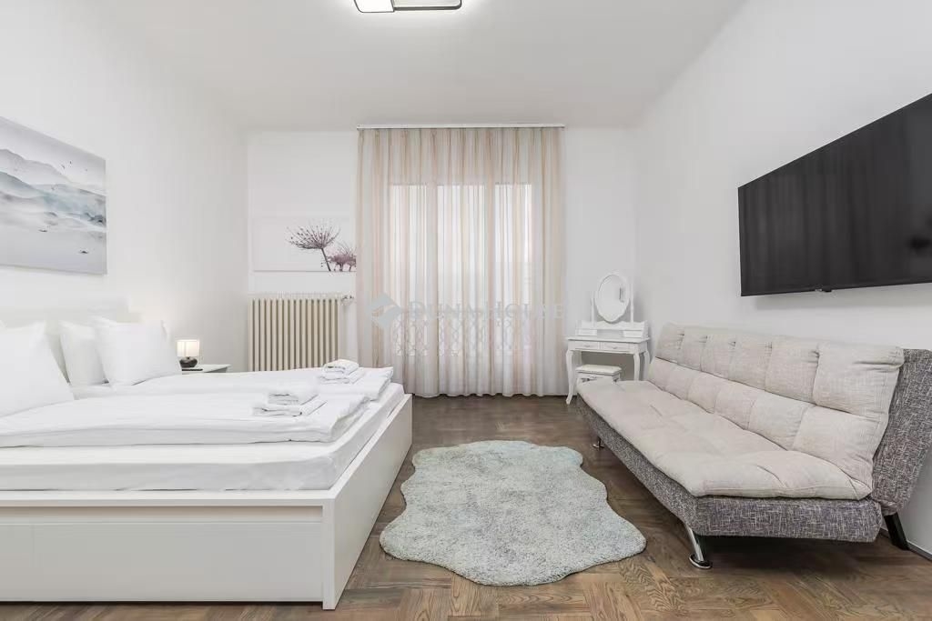 7. ker. az Astoriánál eladó, 98 m2-es, jelenleg két önálló lakássá alakított, teljes körűen felújított, klimatizált, ERKÉLYES, napfényes, AIRBNB-engedélyes lakás, liftes, jó állapotú polgári ház magas emeletén.
