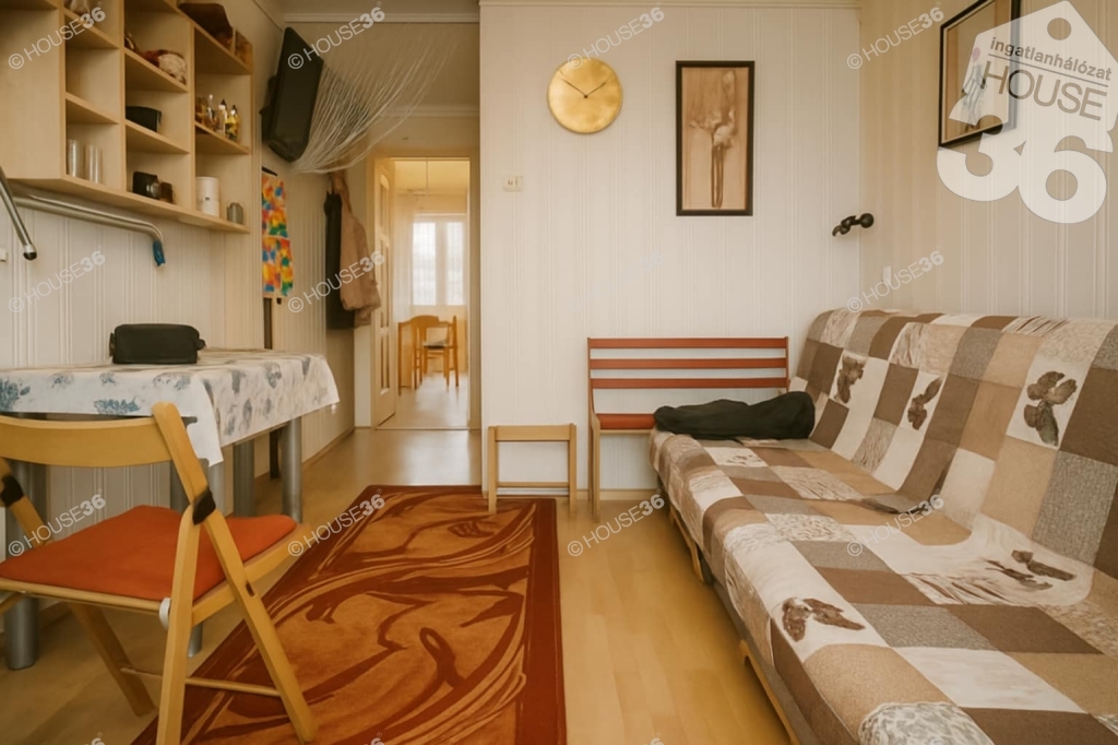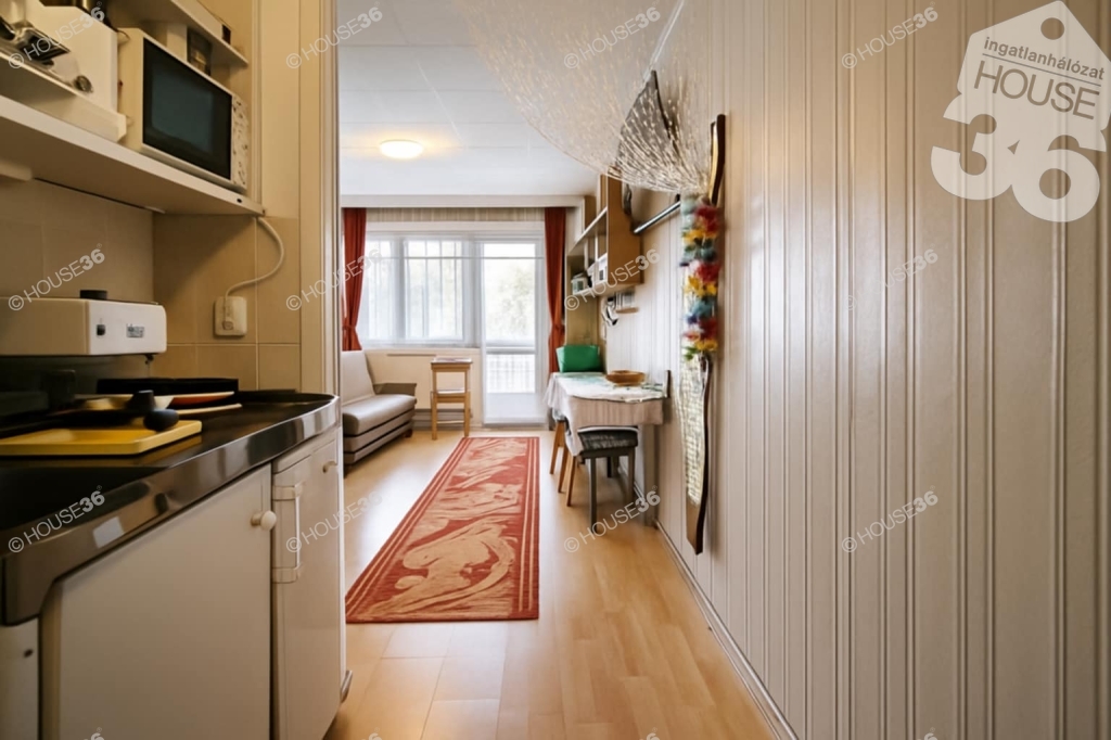 A lakás elrendezése: szoba, előszoba, főzőfülke, felújított fürdő, francia erkély. A környék rendezett, szolgáltatások, éttermek, boltok, busz- és vasútállomás pár perc sétára.