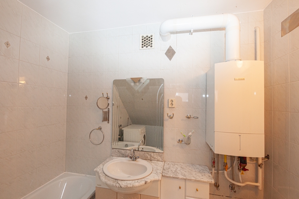 A társasház 1992-ben épült, tégla építésű, fa 2 rétegű nyílászárókkal. Az ingatlan jó állapotú, egyedi méréssel rendelkezik. A fűtés és melegvíz ellátásról már bélelt kéményes, kondenzációs gázkazán gondoskodik.