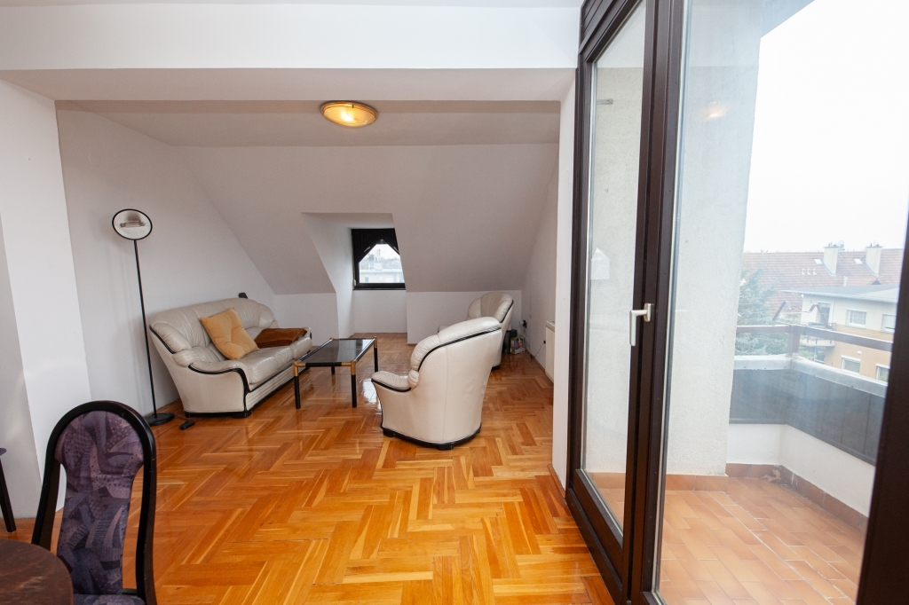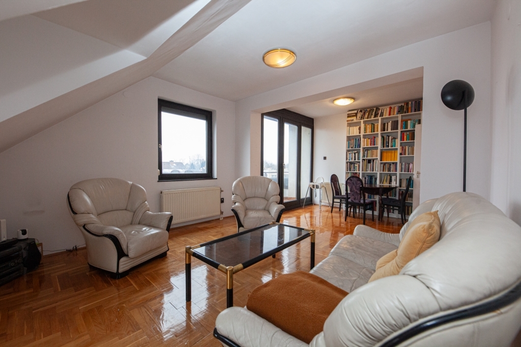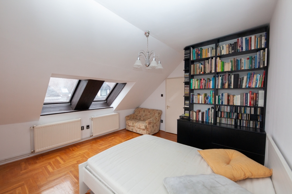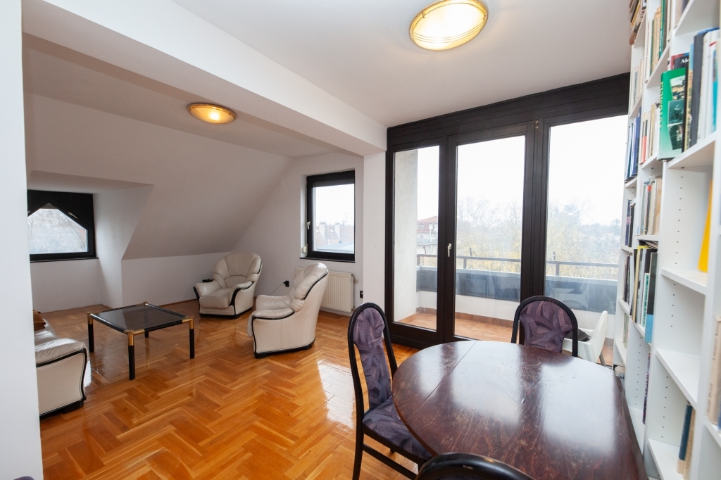 ELADÓ Bp. XIV. Kerületben Zuglóban, Alsórákoson egy 66 nm-es 1+2 szobás, erkélyes, 3. emeleti, tetőtéri lakás. Az ár tartalmazza a lakáshoz kizárólagosan tartozó önálló tárolót és egy garázst a társasház saját kertjéből történő beállással.