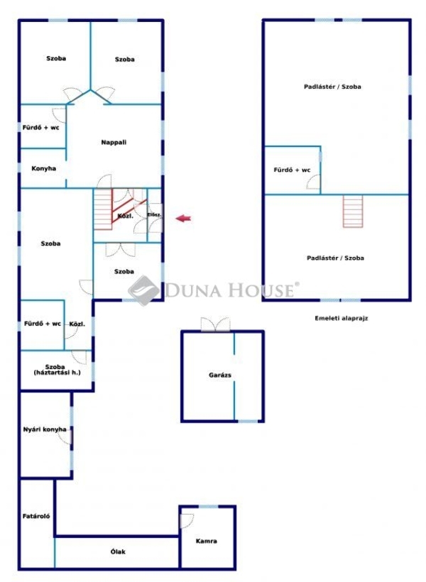- 2 fürdőszoba, háztartási helyiség.