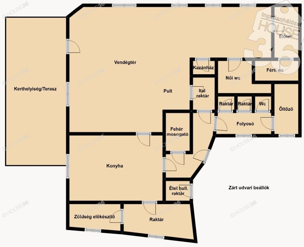 Kecskeméten, a Piachoz közel, utcafronti, sarki, kb. 100 m2-es, több helyiségből álló üzlethelyiség, kerthelyiséggel eladó! Alkalmas vendéglátó egységnek, pizzériának, étteremnek (hideg/meleg konyhás), egyéb üzleti tevékenységnek!