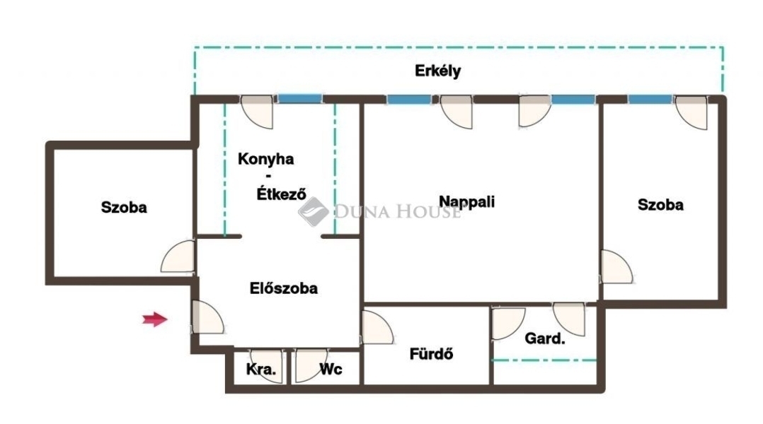 - Nappali + 2 szoba + gardrób