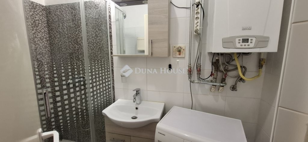 A lakás fürdőszobája felújított, modern, zuhanyzós kialakítású. A fűtésről gáz cirkó rendszer gondoskodik radiátoros hőleadással. A konyha-étkező a belső udvarra néz, így csendes, meghitt hangulatú. Bár a lakás mérete praktikus, még gardrób is helyet kapott benne – minden ruhának és személyes holminak jut elegendő tér.
