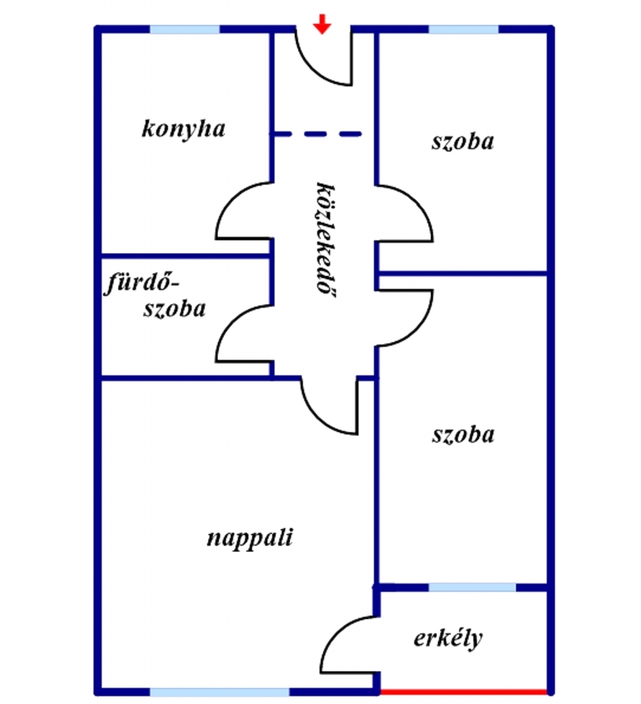 Debrecen Belvárosában a Holló János utcában eladó egy 55 nm alapterületű 1 egész + 2 félszobás tégla építésű társasházi lakás.