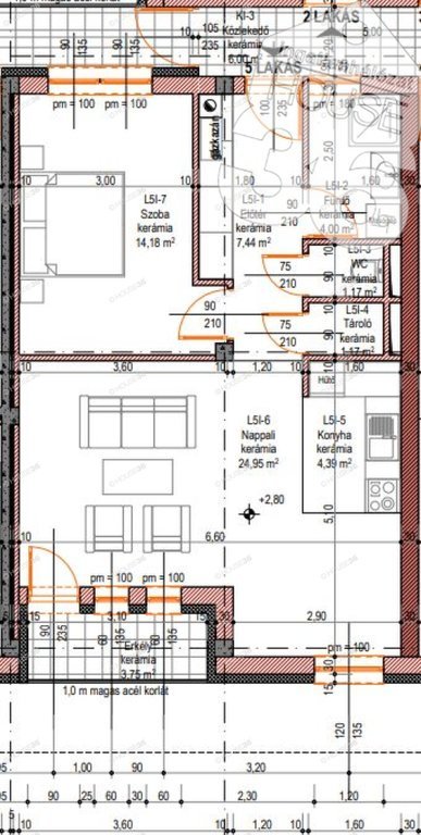 A társasház első emeletén, 57,3 m2 lakóterű, nappali + 1 szobás lakás, 3,75 m2 erkéllyel megvásárolható.