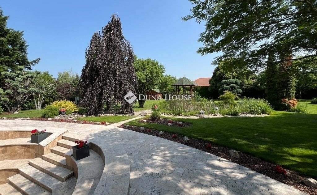 - 2700 m2 gondozott kert öntözőrendszerrel, tavirózsás kerti tó és patak