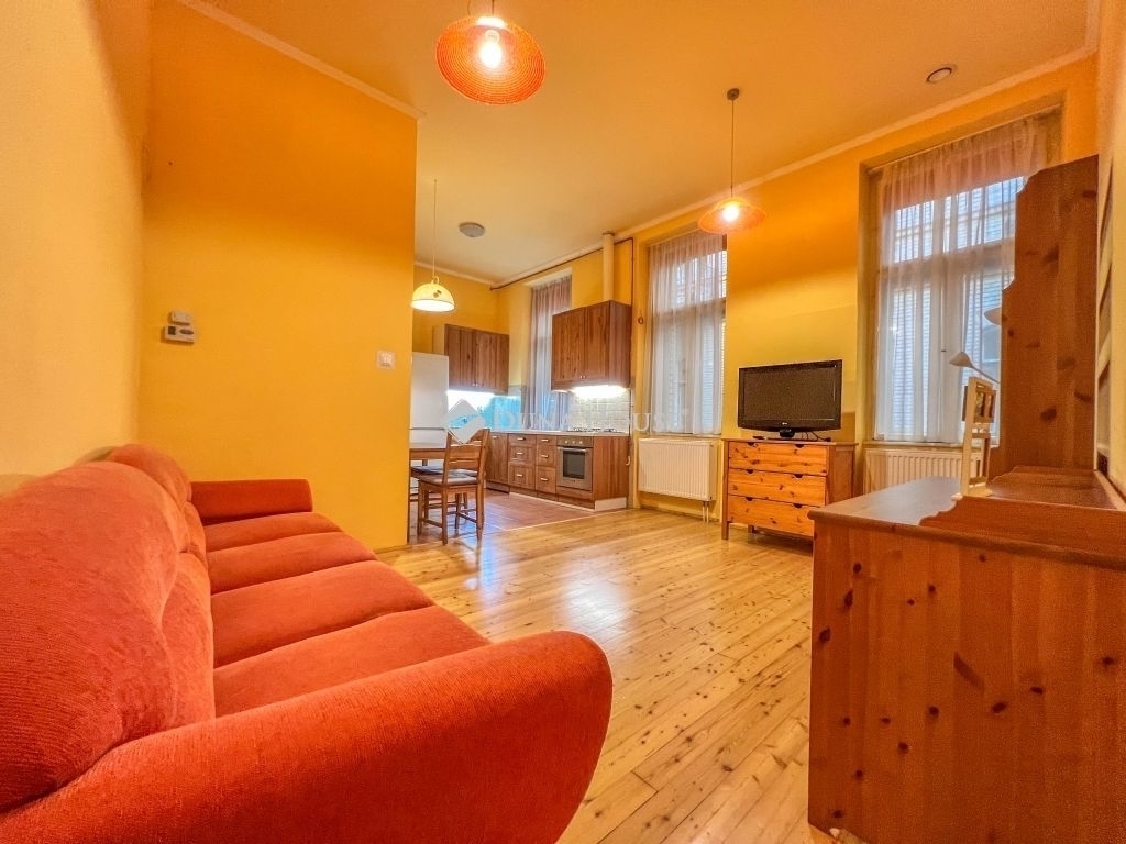Megvételre kínálunk Budapest 6. kerületben, a Csengey utcában, szépen karbantartott, lift nélküli, három emeletes, belvárosi társasházban, egy tehermentes, első emeleti, 53 m2-es, amerikai konyhás nappali plusz két szobás lakást.