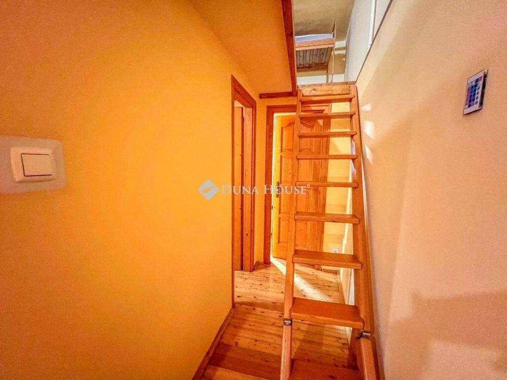 A két szoba fölött fekvő galéria (165 cm)l, illetve egy gépészeti tároló került kialakításra, így összesen 83 m2 a lakás.