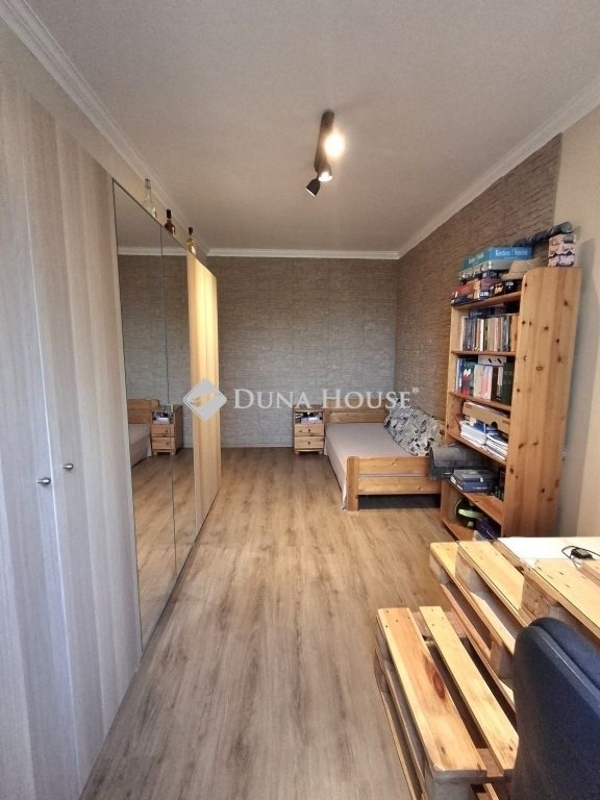 55nm-es, 2 szoba (kb. 20nm és 12nm) + hallos, közepes állapotú panel lakás erkéllyel. A lakás napsütötte, világos, nagy ablakokkal van ellátva. Kelet-nyugati fekvésű, a nappali felöli a keleti oldal, a kisebb szoba és a mellette lévő konyha a nyugati oldal. Az egész ház műanyag nyílászárókkal készült anno, amelyek a kezdetektől fogva jól működnek és amelyek később redőnyt kaptak. A fűtés egyedi mérők szerelésekor a radiátorok ki lettek cserélve. A szobákban klasszikus, kifejezetten jó állapotú szalagparketta van, míg a többi helyiségben járólap. A konyhabútor és a beépített szekrények az eredetiek, de újrafestve, tapétázva. A falakra maximálisan ráfér egy festés.