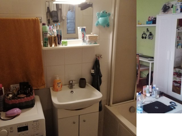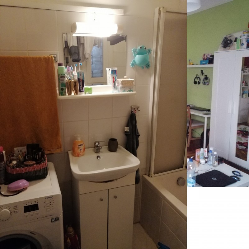A lakásba belépve az előszobába érünk, melynek meghosszabbításában a konyha található valamint az onnan nyíló kicsi de annál hasznosabb tároló helyiség. Az előszobából jobbra fordulva a tágas, nagy belmagasságú, parkettás, világos szobába jutunk, melyből nyílik a fürdőszoba és a fürdőszobán belül található külön helyiségben a WC.