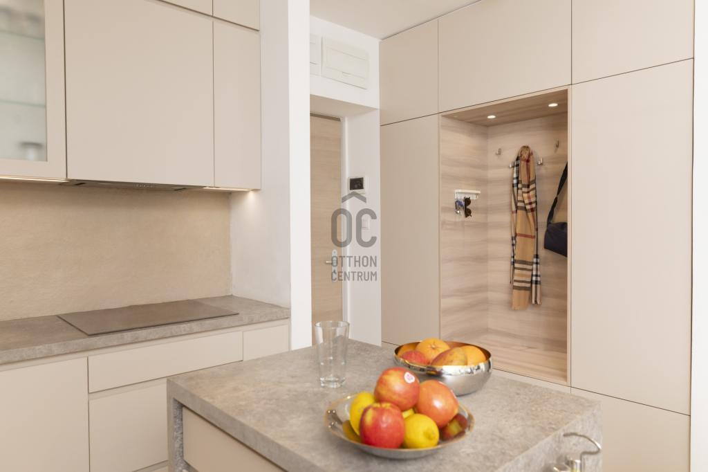 A régi, polgári épület a város legszebben kialakított környezetében, a forgalomtól elzárt, díszburkolatos Corvin közben található. A lakás három hatalmas ablaka közvetlenül a Corvin Mozira, és az azt körülvevő sétáló utcai övezetre néz. Ezért is csendes a lakás, a Ferenc körút, vagy az Üllői út zaja a szomszéd házakkal határolt.