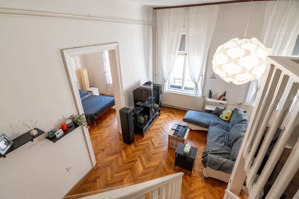 II. kerületben, különleges épületben, Komjádi uszoda szomszédságában 77 nm-es 2,5 szobás, utcai nézetű lakás eladó.