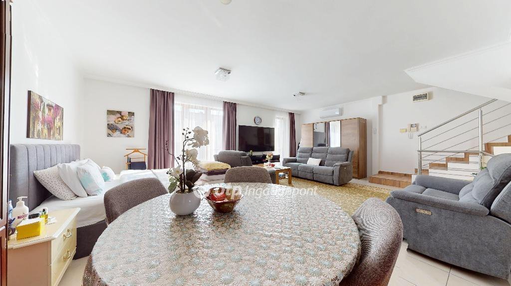 A ház nagyon szép, költözhető, berendezéssel együtt is eladó. Andante kanapék, IKEA franciaágy, IKEA galériás gyerekszoba bútor a gépesített konyha.
