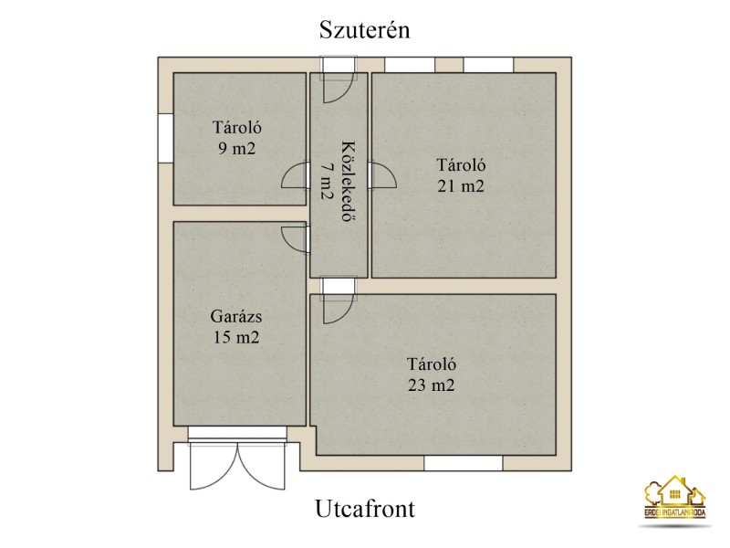 A szuterén jelenleg autóbeálló, tüzelőanyag tároló, hobbi műhely és szerszámtároló részére biztosít helyet.