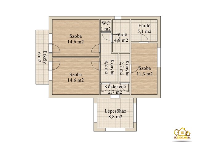 A 2. számú 68 m²-es apartman lakásban, jelenleg a tulajdonos lakik. Ez a lakrész felújításra szorul.