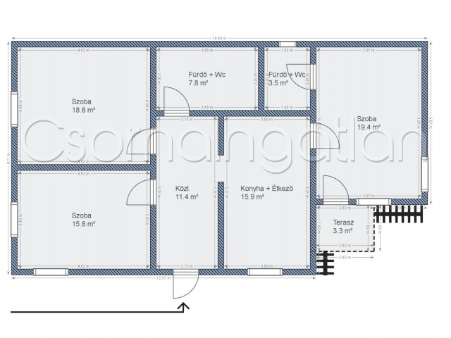 Szanyban 90 m2-es felújított duplakomfortos családi ház 900 m2-es telken eladó.