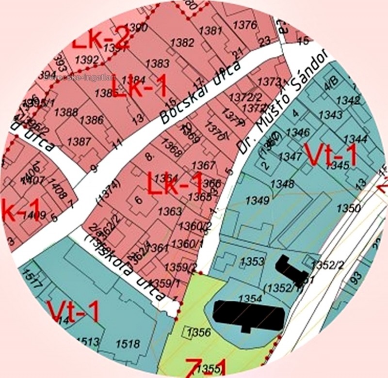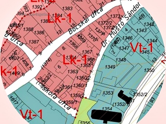 Az ingatlan Kisvárosias lakóterületbe van sorolva (Lk-1 jelöléssel), mely zártsorú, előkert nélküli, belvárosi besorolást jelent.