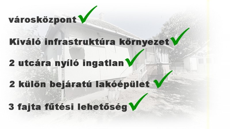 2 külön bejáratú és összenyitott önálló lakóegység! Alternatív hasznosítási lehetőség a Malom utca felé, az utca homlokvonalán álló falban portál, bejárat kialakításával! Déli tájolású lakóhelyiségek! Vasbeton alapon vastag hőtároló falak! 2 árambekötés 1 és 3 fázisú árammal. 2 wc berendezés, fürdőszobával együtt és külön is. 3 fajta fűtési lehetőség! 2 fajta használati melegvíz lehetőség! Klíma! Belsőtéri padlásfeljáró! Üres padlástér! Maradó konyhai berendezések, és igény szerinti bútorzat!