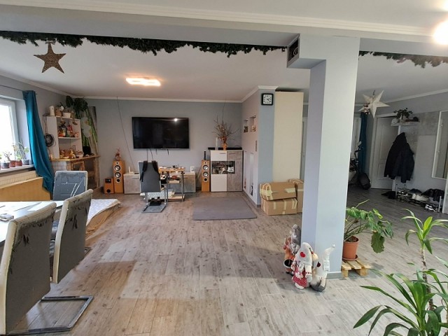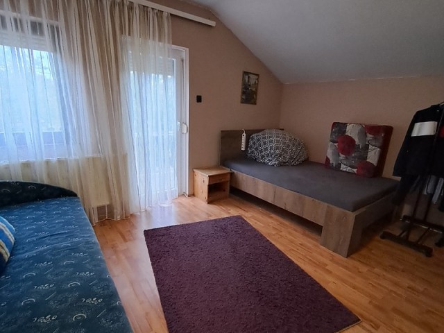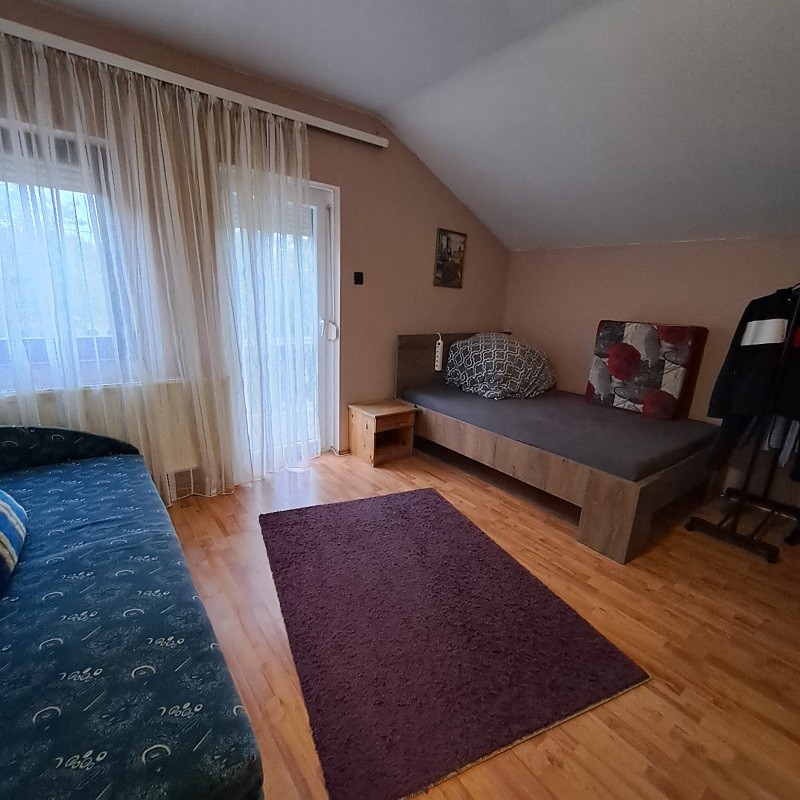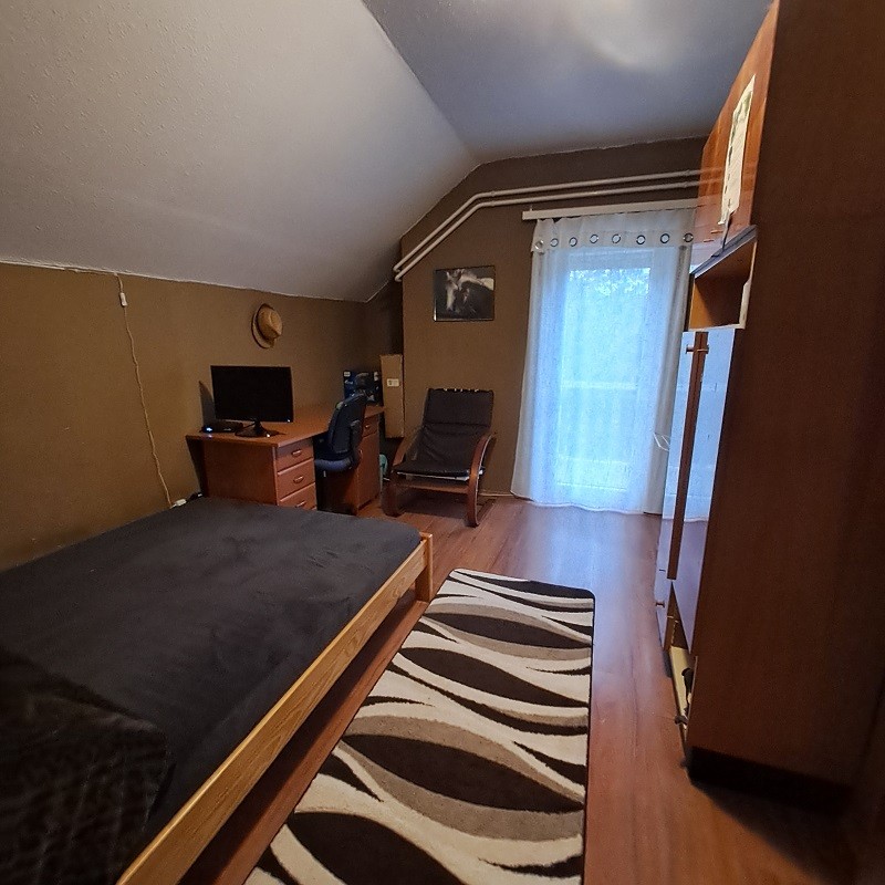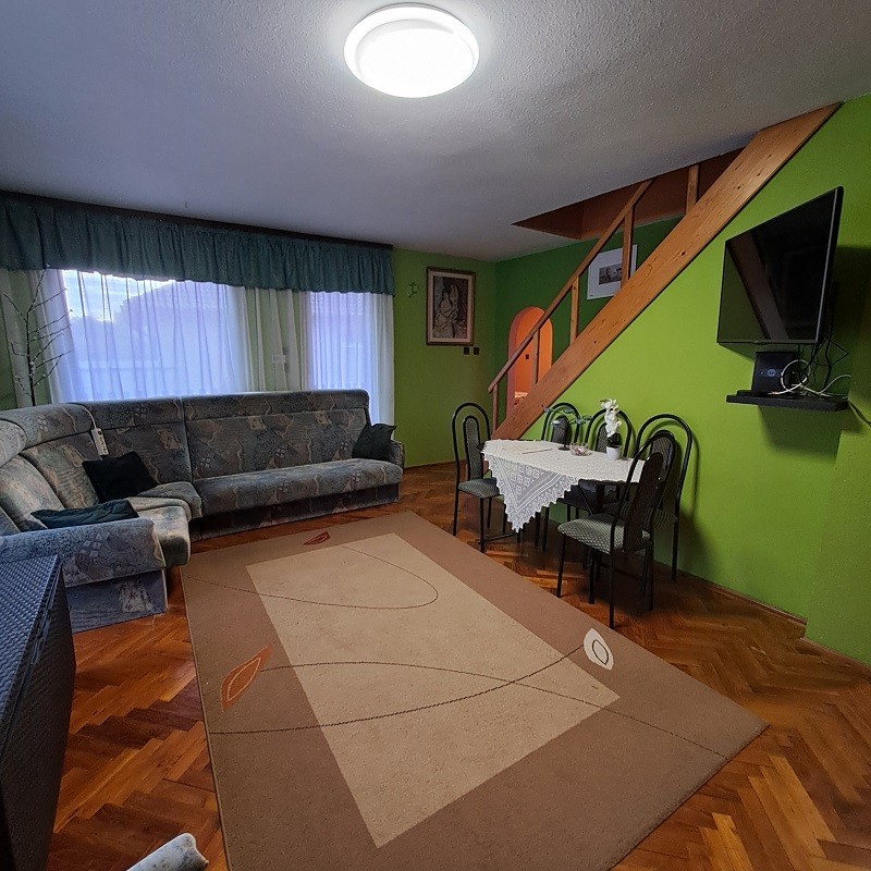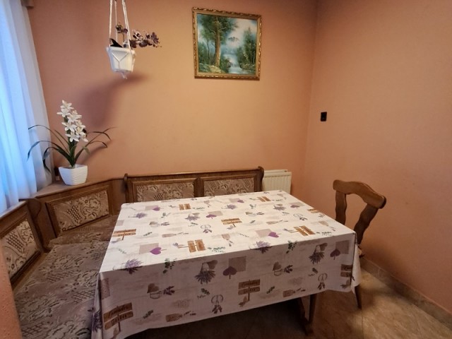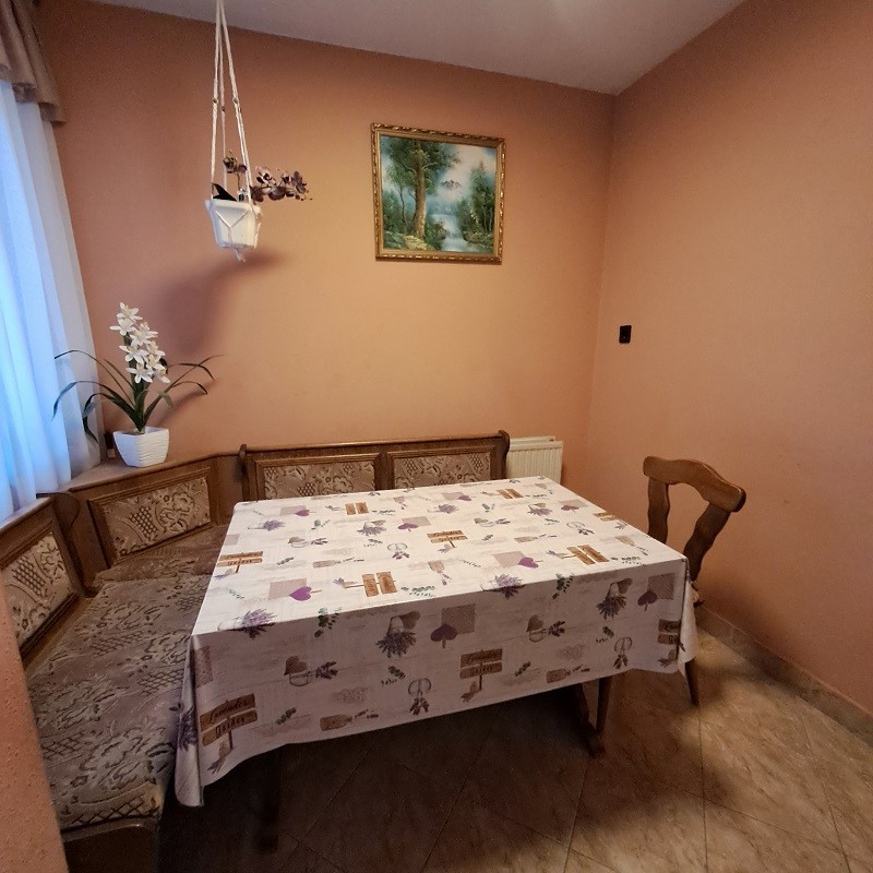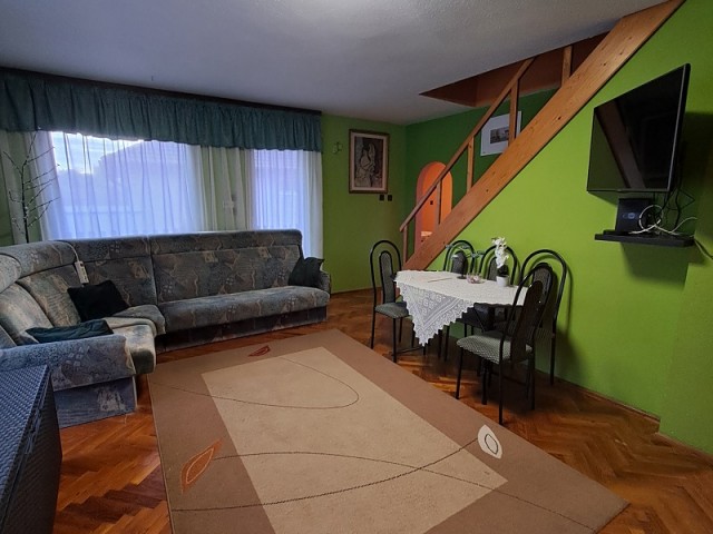 Lakóterülete összesen 148 m2, a földszinten előtér, konyha, kamra, étkező, nappali, 1 szoba, fürdőszoba és WC található, a tetőtérben 2 szoba, nappali (de 1 válaszafallal szoba alakítható ki, eredeti terv is az volt), valamint fürdő és WC lett kialakítva.