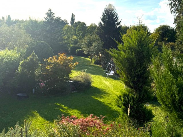 A kert igazi ékszerdoboz: a két kerti tavat és a buja növényzetet a 7 körös öntözőrendszer, valamint a fúrt kút gondozza. A fenntarthatóságról a 4,4 kW-os inverteres , 16 tagos napelemrendszer gondoskodik, amely modern és környezettudatos megoldás.
