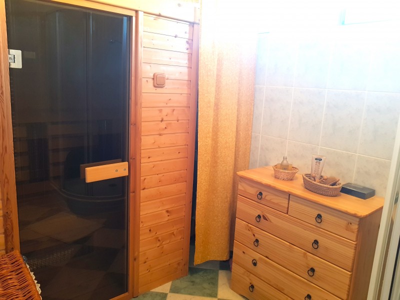Az épület tágas, világos terekkel rendelkezik, ahol a hatalmas ablakokon keresztül szinte beárad a napfény. Az amerikai stílusú nappaliban kandalló gondoskodik a meghitt pillanatokról, innen közvetlen kijárat nyílik a félkör alakú, kővel kirakott teraszra, amelyről lenyűgöző panoráma nyílik a kertre és a távolba. A hálószobákban falfűtés, a közösségi terekben padlófűtés, a fürdőben pedig infraszauna emeli a komfortérzetet.