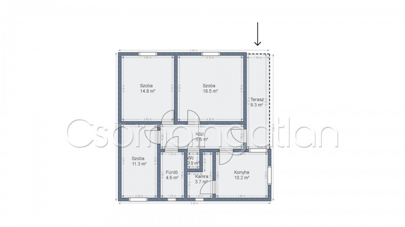 74 m2-es összkomfortos családi ház 1975 m2-es telken eladó