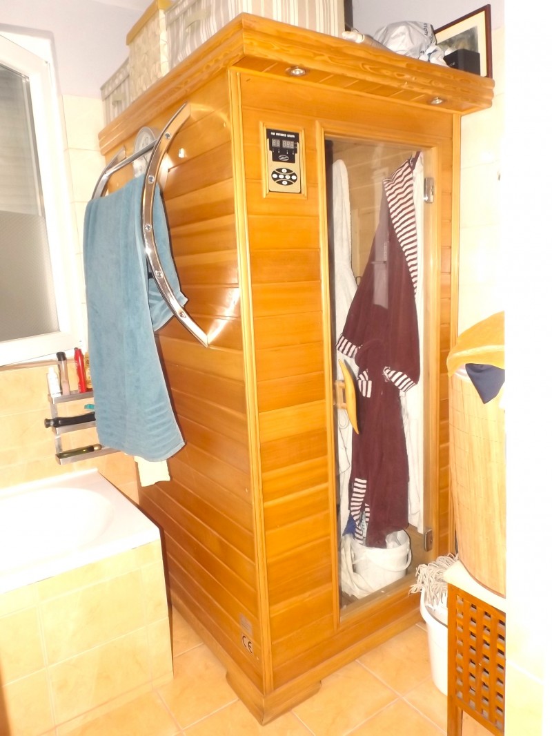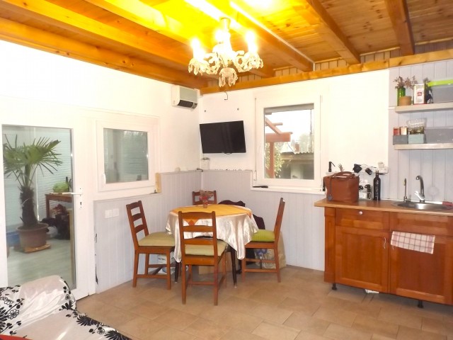 A házba érkezve egy hangulatos terasz fogad, amely tökéletes helye a reggeli kávénak vagy egy csendes esti pihenésnek. Innen az előtéren át jutunk az étkezős konyhába, ahol a tágas elrendezés és a minőségi burkolatok otthonos, mégis modern érzetet keltenek. A konyhából nyíló nappaliban egy fatüzelésű, öntöttvas kályha melegsége és a klíma kényelme teszi kellemesen használhatóvá az év minden szakában. A kádas fürdőszobában helyet kapott egy infraszauna is.