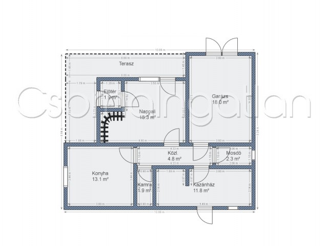 - házon belüli garázs