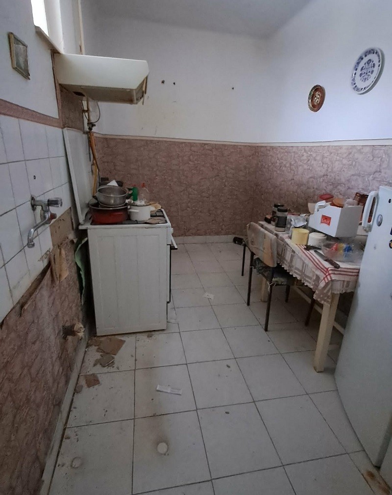A fürdőszobában anno csőtörés volt, mely ki lett javítva, újra lett betonozva, de emiatt a hozzáépített részen repedés láthó, kifestve nem lett a ház utána.