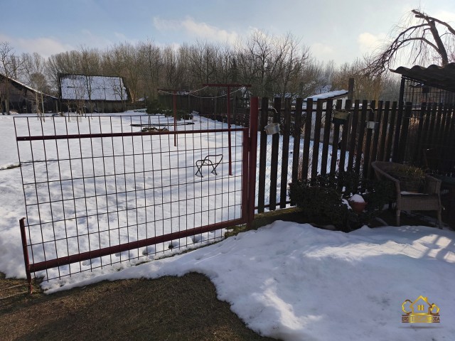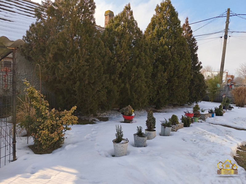 A kert rendezett 1028 m²-es, kisebb kerti fatárolókkal. Locsolása kerti csappal megoldott. A telek több autó beállására alkalmas.