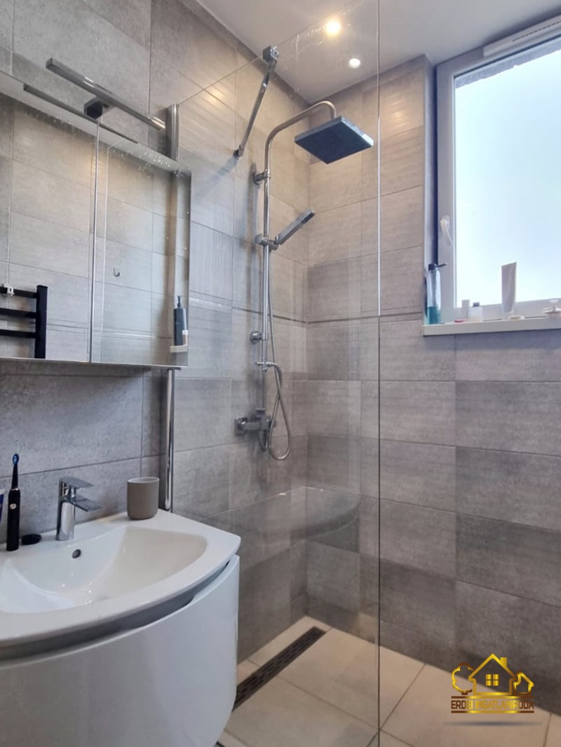 A modern, fiatalos kialakítás, a belső műanyag tolóajtók, a beépített szekrények, a klíma, az ablakos fürdőszoba és konyha gépekkel, mind-mind az odaköltözők életét teszik komfortosabbá, kényelmesebbé. A teljes berendezés a vételár részét képezik.