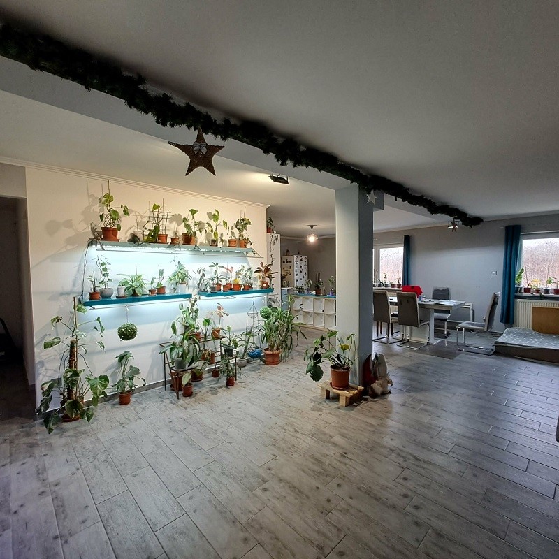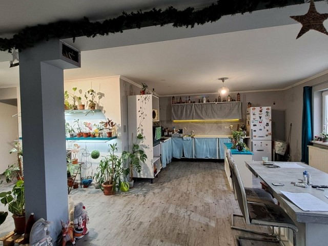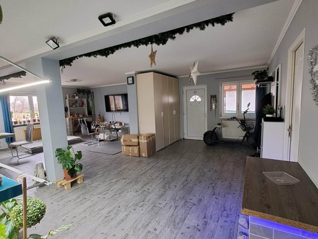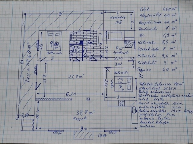 Az ingatlan lakóterülete 97,4 m2, melyben nappali, 3 félszoba, fürdőszoba (kád és zuhanyzó is ki van építve), közlekedő, valamint WC található. A házhoz „L” alakú kb. 60 m2-es fedett terasz is tartozik. A tetőtér 70 m2, mely csak betonozva van.