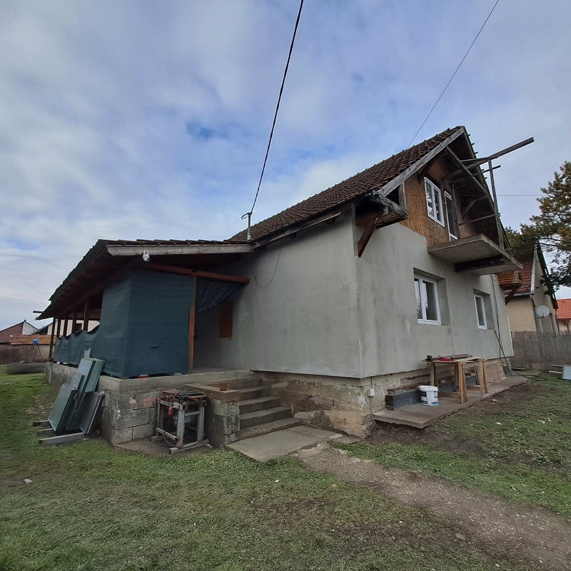 A ház a ’80-as években épült beton alapra téglából, 2019-től folyamatos felújításon esett át, (villanyvezetékek, 5 cm-es aljzatbeton szigetelés, 25 cm üveggyapot + 7 cm perlitbeton födémszigetelés, burkolatokat – szerelvényeket cseréltek, a nyílászárókat 2 rétegű műagyagra cserélték). Elkezdték a ház külső szigetelését 10 cm-es hungarocellel, ezt még az eladó be fogja fejezni.