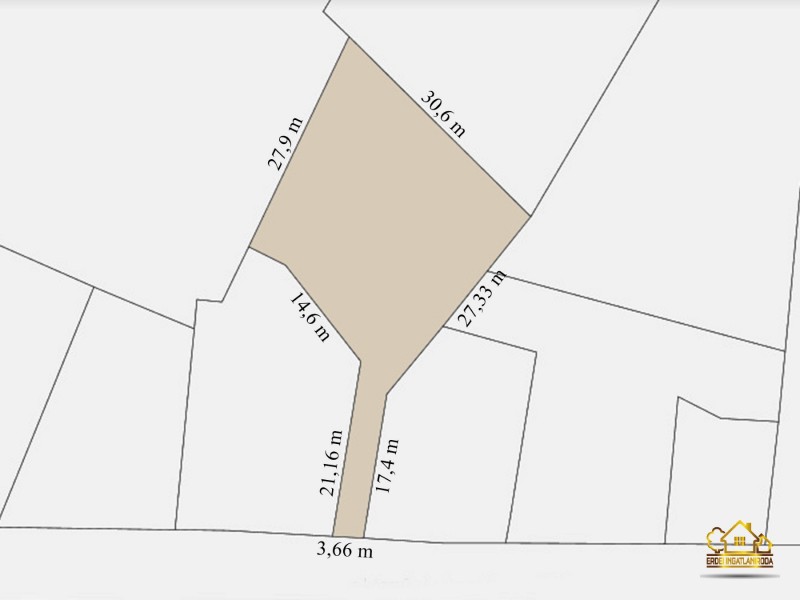 Eladó Tököl belvárosában egy 782 m²-es nyeles telek. Nyél szélessége 3,65 m.