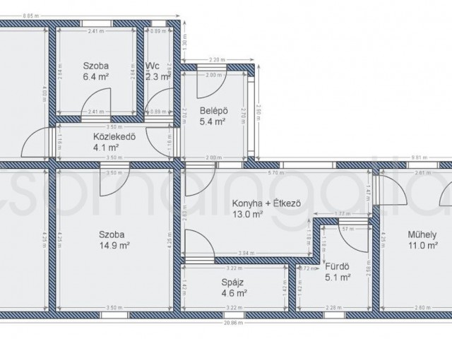 Az ingatlan magas alapos, 91,8 m2 hasznos alapterülettel.