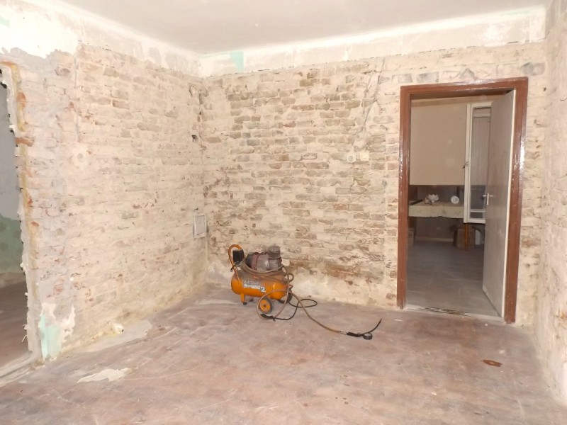 Helyiségek: előtér(első bejárattal) szerkezetkész másfél szoba nyílik az előtérből(régebben nekiálltak a felújításnak, de abbamaradt). Innen nyílik 2 egymásba nyíló hálószoba, amely eredeti állapotú, továbbhaladva a pincelejáró rész a kamra, szemközt a külön toalett. Legvégén a konyha, mellette a fürdőszoba, amely zuhanyos és kádas egyaránt. A földpince püspöksüveges boltozatú. Udvari részen két különálló garázs és távolabb gazdasági melléképület foglal helyet. Az udvar és a kert kerített, a hátsó telek bérművelésre kiadott rész.