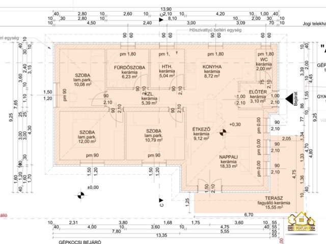 A lakás belső elrendezése rendkívül praktikus és kényelmes 3 hálószoba, fürdőszoba, külön WC helyiség, háztartási helyiség, közlekedő és előszoba áll rendelkezésre. A tágas amerikai konyhás nappaliból egy 16 m²-es fedett teraszra jutunk.