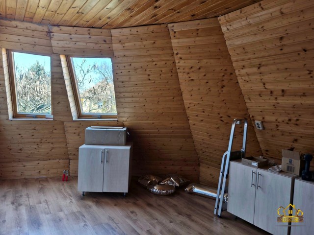 A felső szinten, a galérián jelenleg egy hálószoba van kialakítva, további szobák és fürdőszoba kialakítására is alkalmas, vízkiállások rendelkezésre állnak.