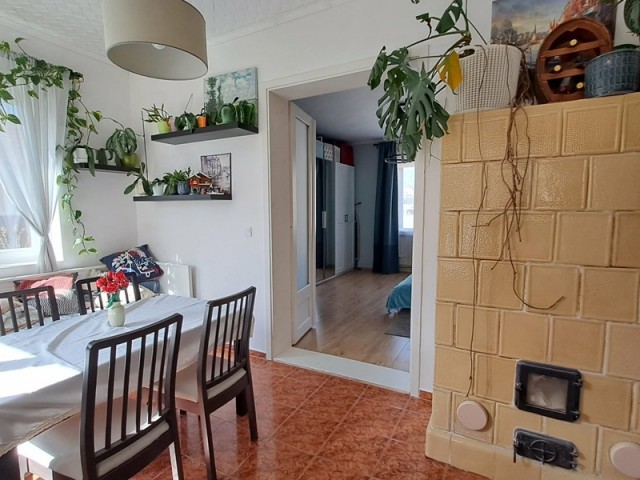 Fűtése turbós gáz cirkóval, és cserépkályhával lehetséges.