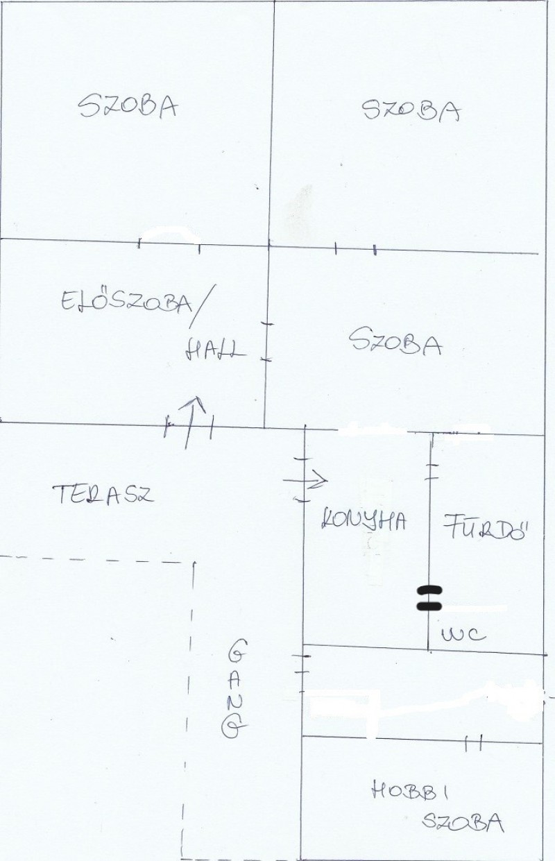 Az ingatlan lakóterülete 100 m2, melyben előszoba, 2 nagy szoba, nappali, konyha-étkező, fürdőszoba található. A ház folytatásában 30 m2-es épületrész van, mely 2 helységből áll – szinteltolással, onnan nyílik egy kb. 20 m2-es pince is. Igény szerint a lakórészhez csatolható, vagy bármilyen célra kialakítható. Itt felújítás nem történt.
