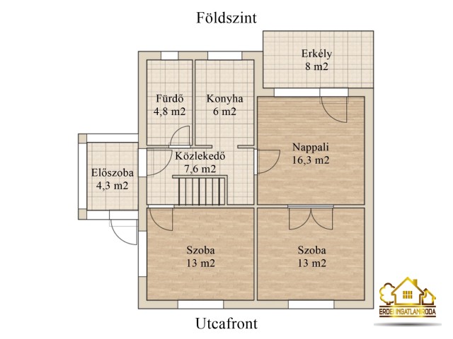 • Elrendezés: Nappali + 2 hálószoba, konyha, fürdő, előszoba és egy hangulatos, 8 m²-es erkély.