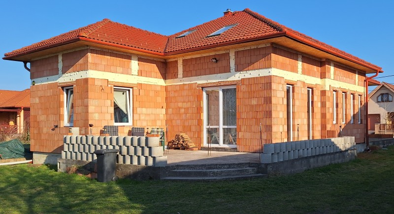 Épület anyaga: tégla, purhab technológiás Porotherm X38-as.